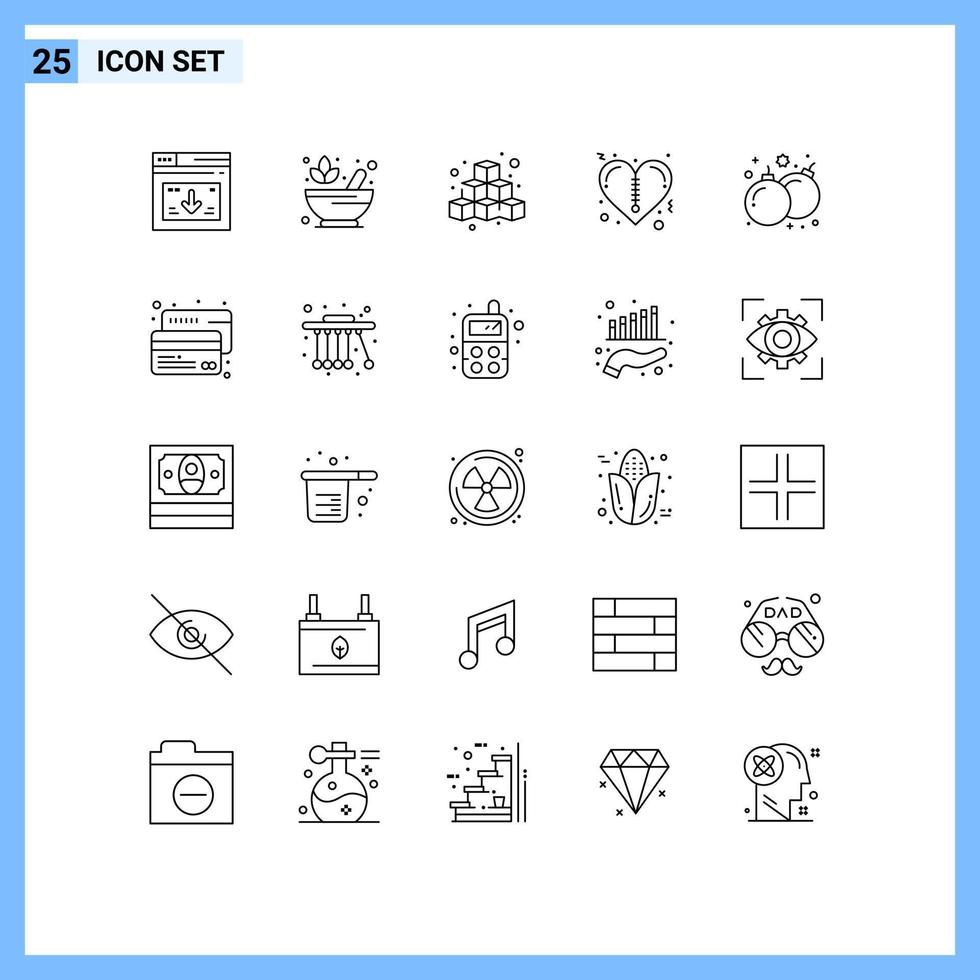 25 Universal Lines Set for Web and Mobile Applications bomb valentines lotus heart game Editable Vector Design Elements
