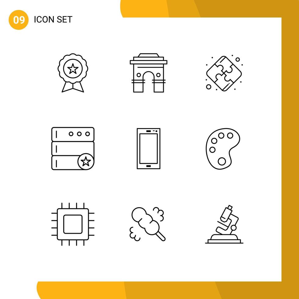 Group of 9 Modern Outlines Set for server database india teamwork puzzle Editable Vector Design Elements