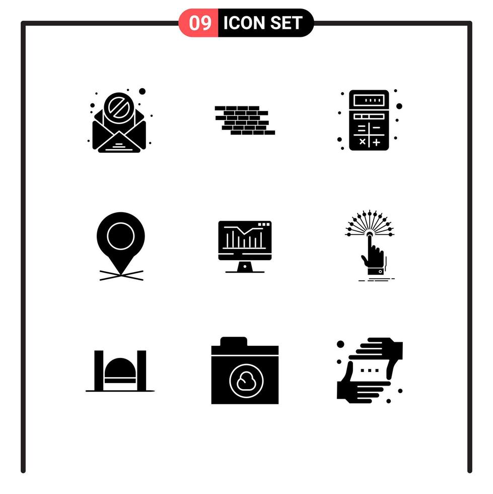 Set of 9 Vector Solid Glyphs on Grid for computer pointer add map interaction Editable Vector Design Elements Free Vector