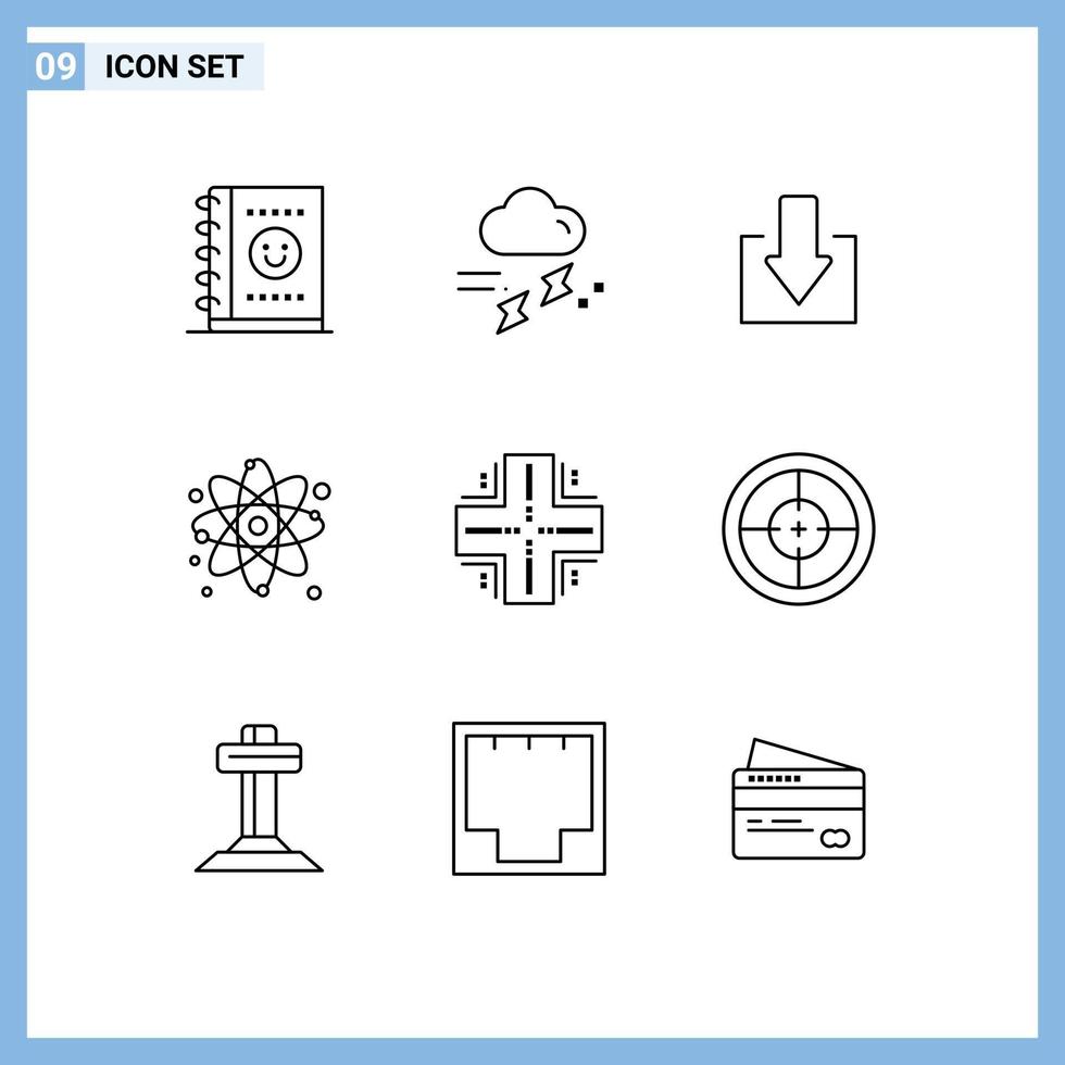 Mobile Interface Outline Set of 9 Pictograms of datacenter computing arrow physics particle Editable Vector Design Elements