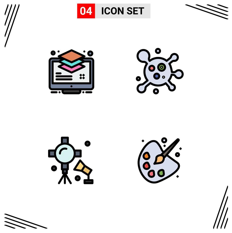 Set of 4 Modern UI Icons Symbols Signs for arrange lights buffer molecule studio lightning Editable Vector Design Elements