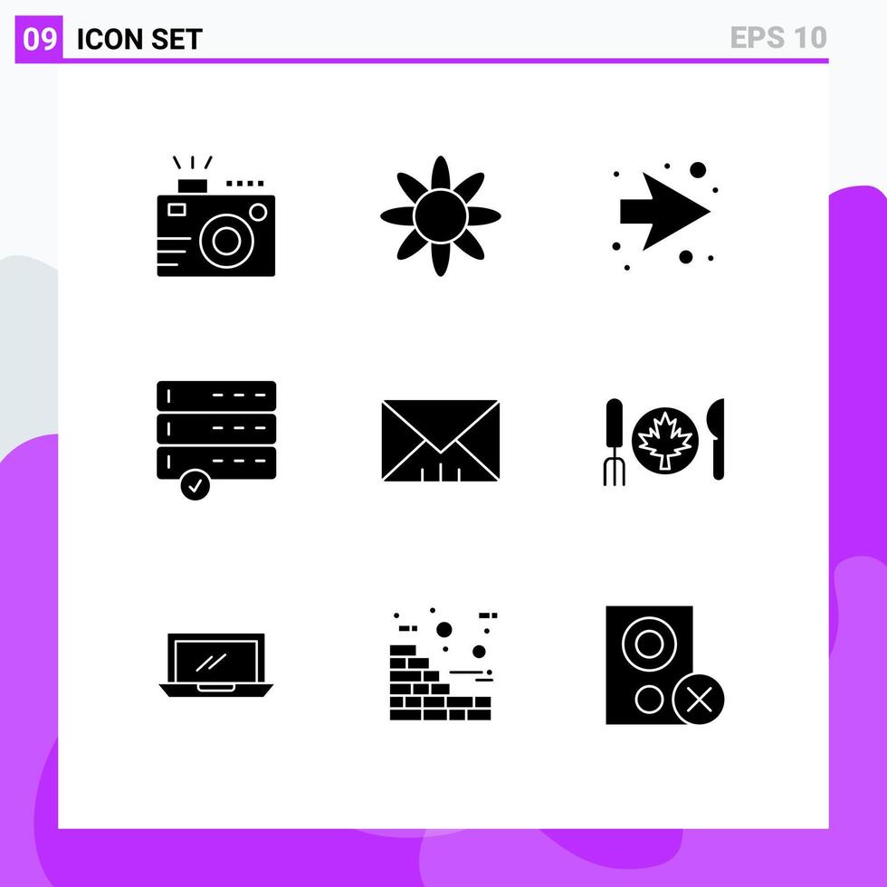 Mobile Interface Solid Glyph Set of 9 Pictograms of dinner message arrow interface data Editable Vector Design Elements