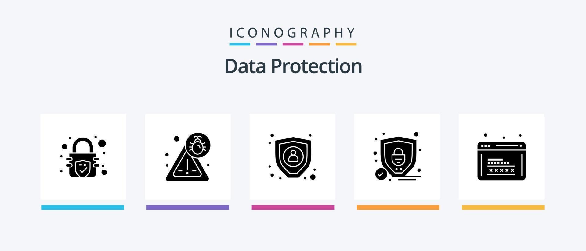 Data Protection Glyph 5 Icon Pack Including . web. personal. programming. coding. Creative Icons Design vector