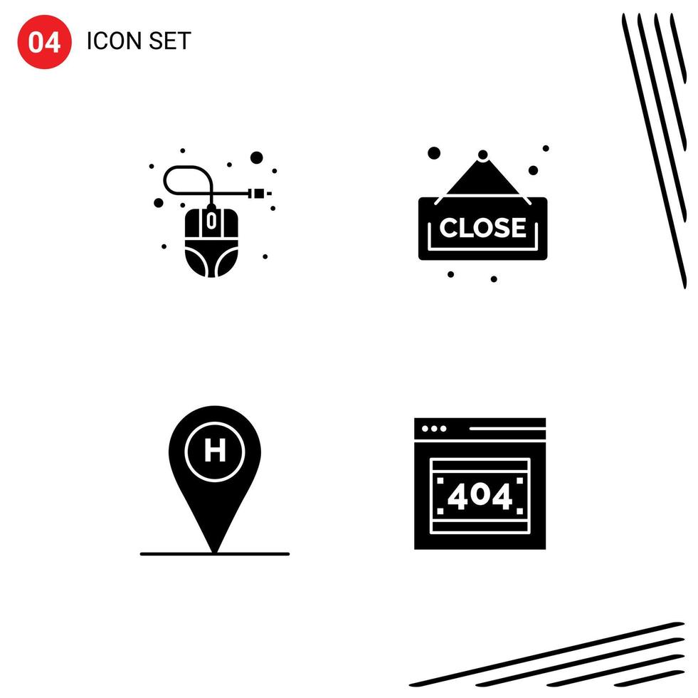 Set of 4 Vector Solid Glyphs on Grid for computer travel mouse shopping error Editable Vector Design Elements Free Vector