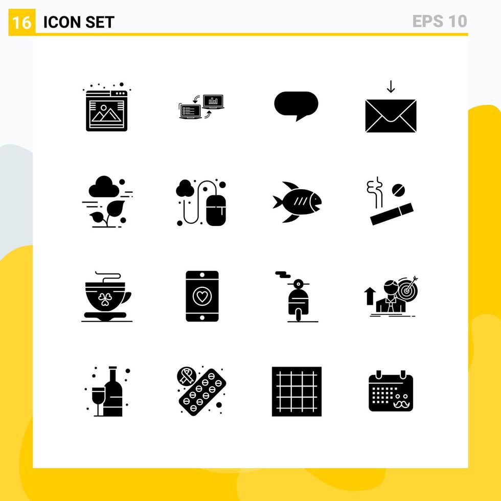 Set of 16 Modern UI Icons Symbols Signs for cloud receive data message chatting Editable Vector Design Elements