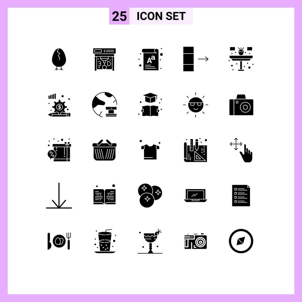 Set of 25 Vector Solid Glyphs on Grid for table flower document desk data Editable Vector Design Elements