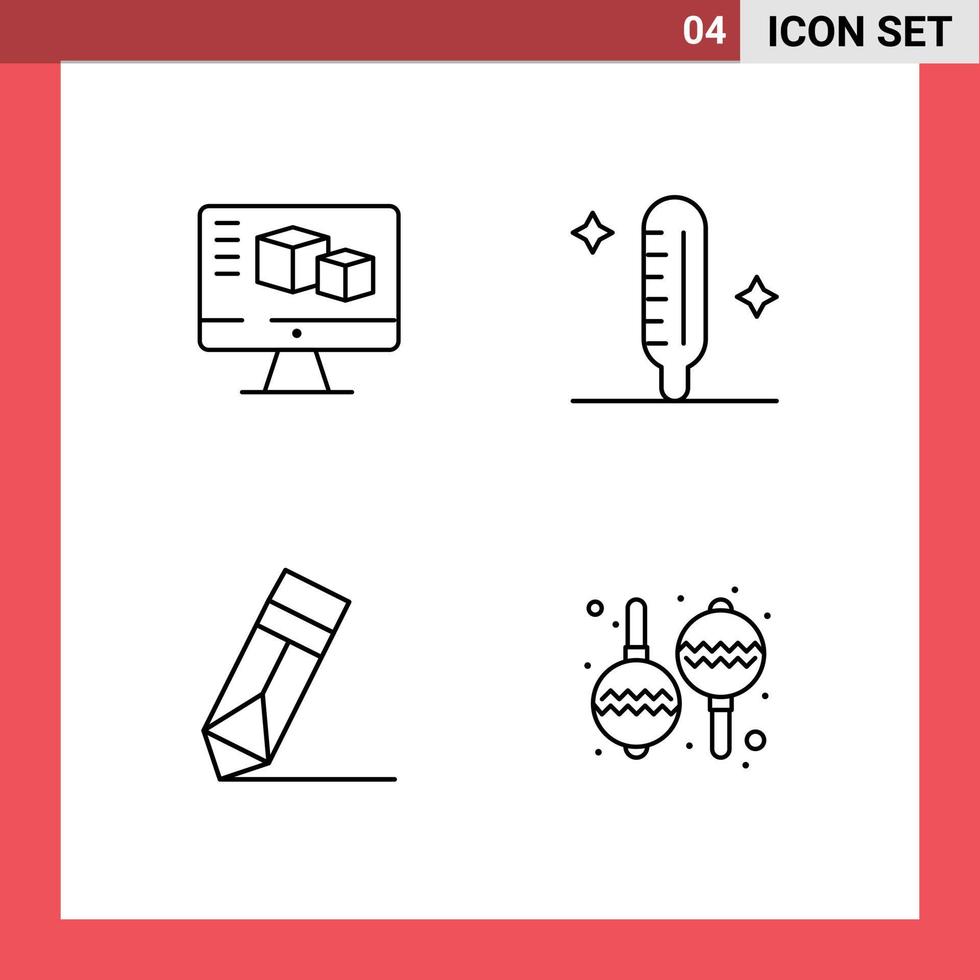 Mobile Interface Line Set of 4 Pictograms of computer design computing medical wreath Editable Vector Design Elements
