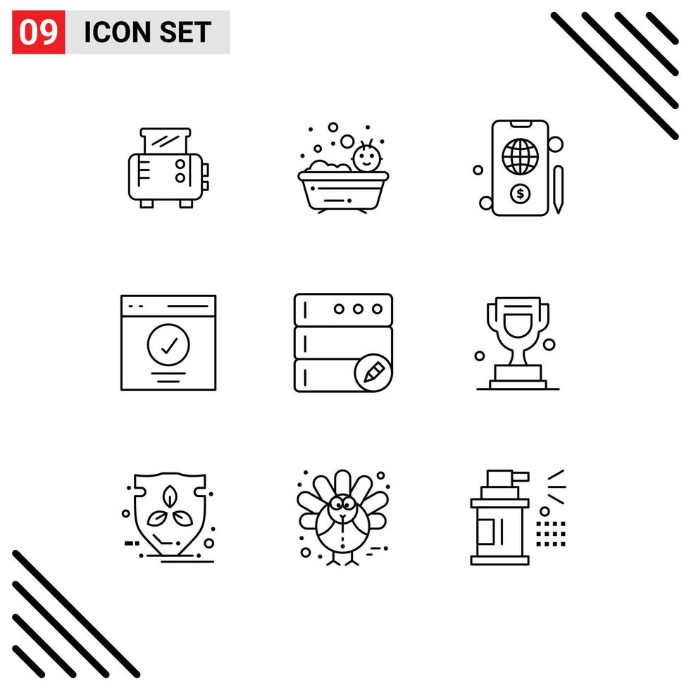 Outline Pack of 9 Universal Symbols of server database globe user message Editable Vector Design Elements