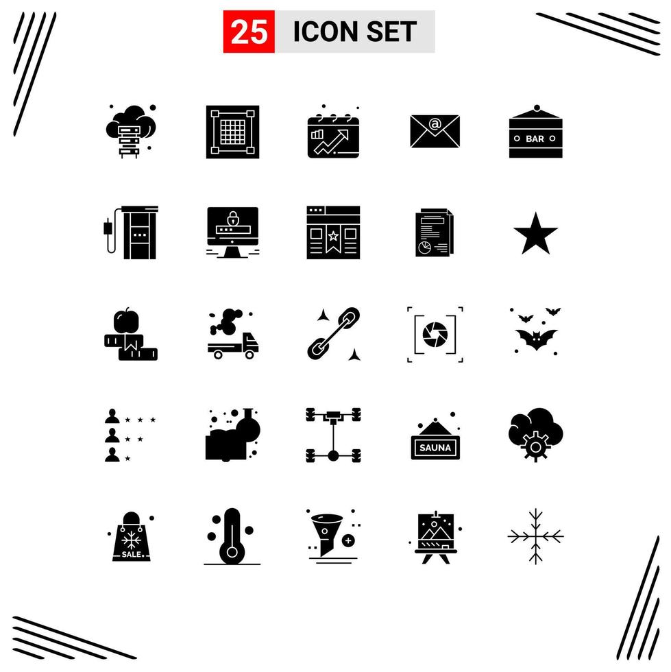 Modern Set of 25 Solid Glyphs and symbols such as bar sign mail grid inbox graph Editable Vector Design Elements