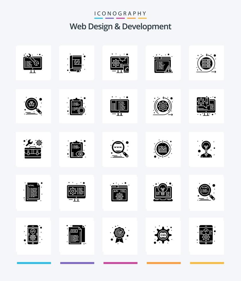 Creative Web Design And Development 25 Glyph Solid Black icon pack Such As iteration. error. design. browser. responsive Free Vector