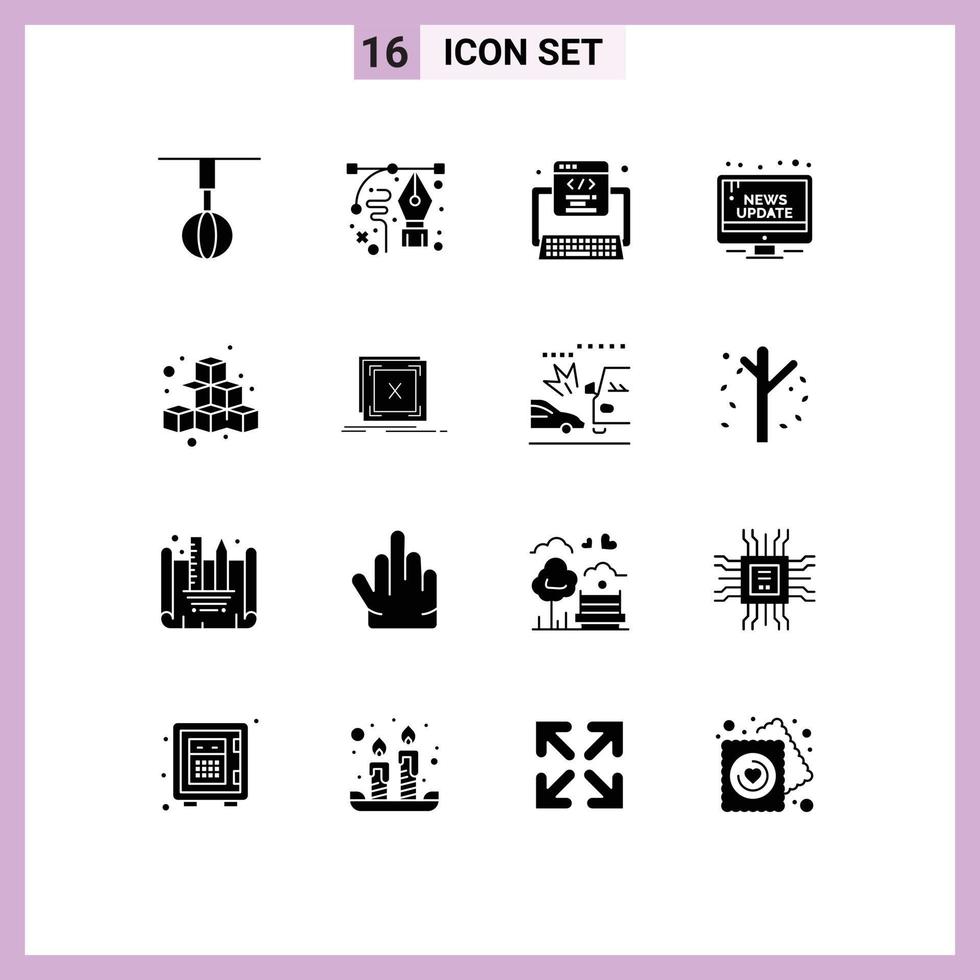 Mobile Interface Solid Glyph Set of 16 Pictograms of public information pen campaign program Editable Vector Design Elements