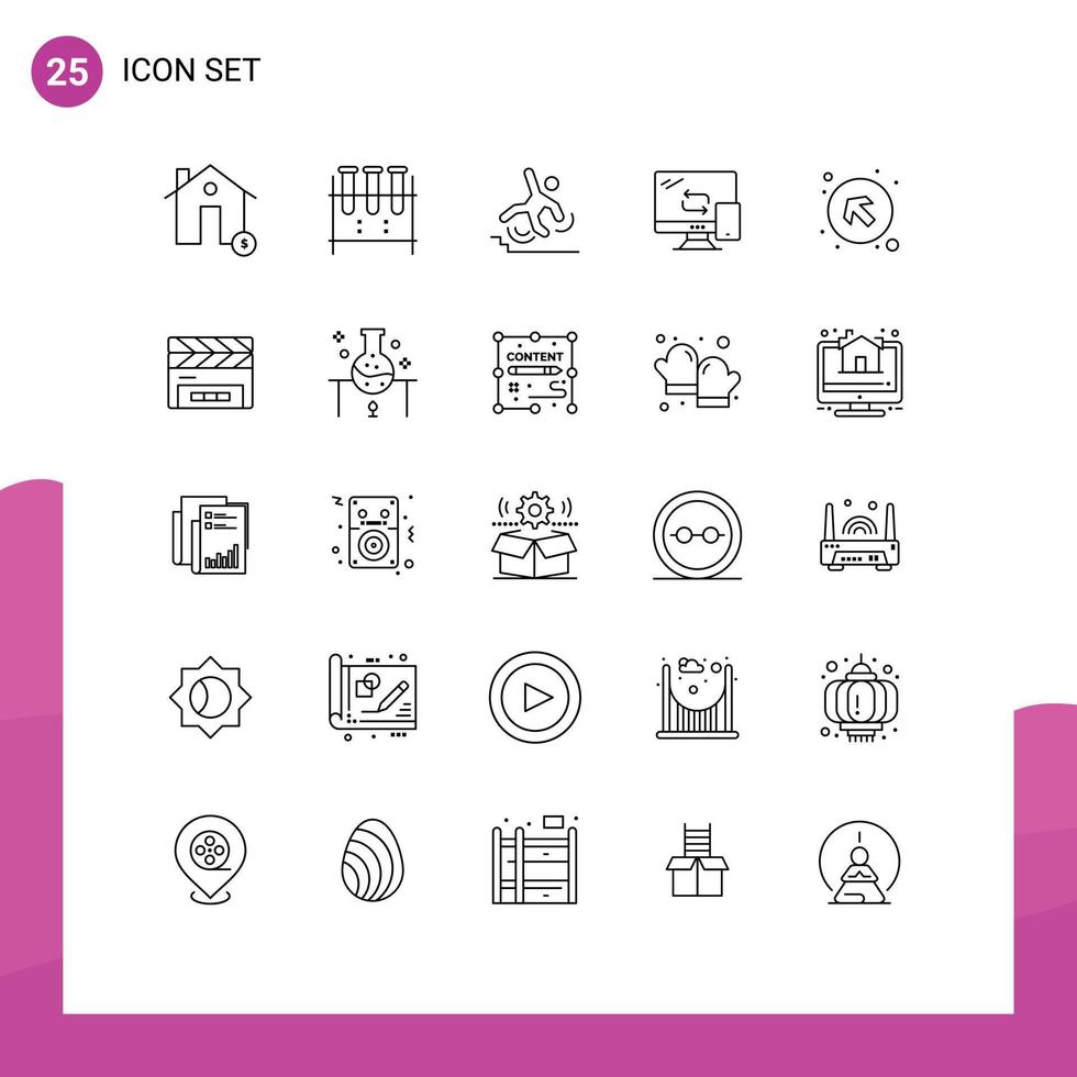 Modern Set of 25 Lines Pictograph of networking computing lab glassware fall failed Editable Vector Design Elements Free Vector