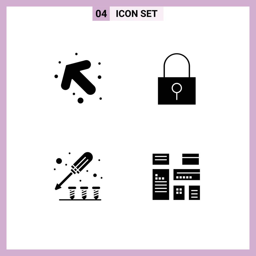 Group of 4 Modern Solid Glyphs Set for arrow tool lock secure password native Editable Vector Design Elements