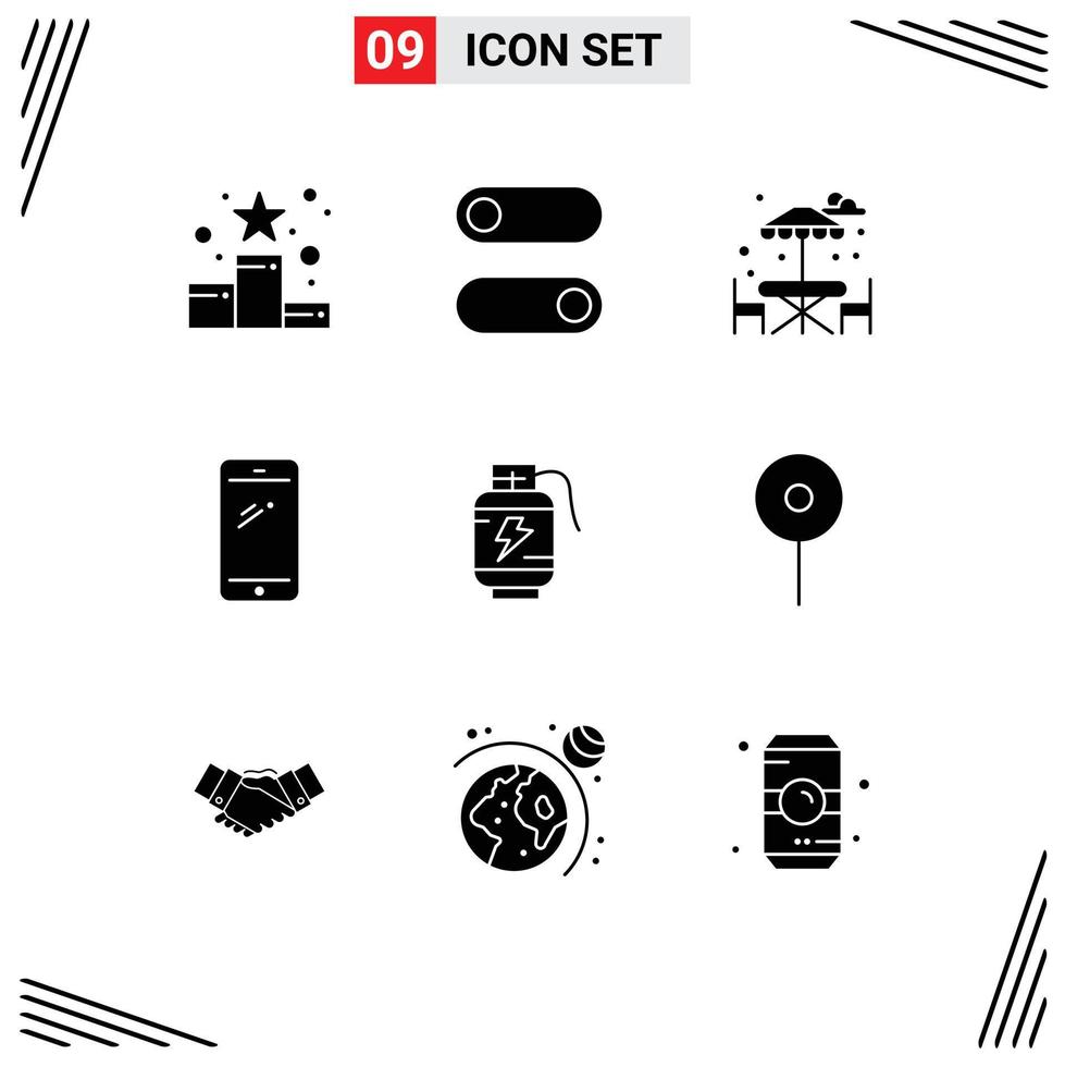 User Interface Pack of 9 Basic Solid Glyphs of battery iphone table android smart phone Editable Vector Design Elements