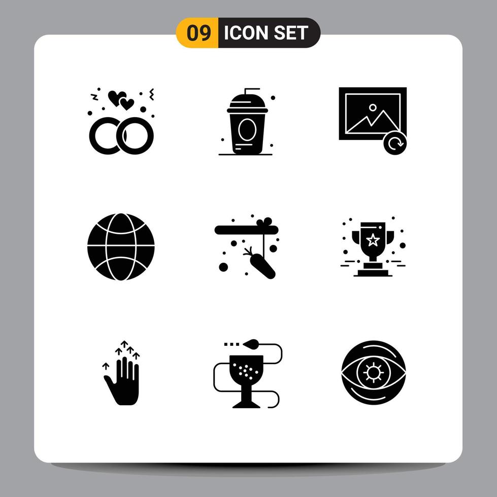 9 Universal Solid Glyphs Set for Web and Mobile Applications rod fishing independece science globe Editable Vector Design Elements