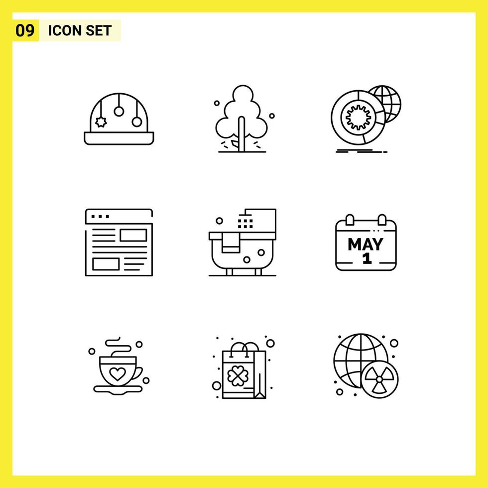 Universal Icon Symbols Group of 9 Modern Outlines of bath layout big data development application Editable Vector Design Elements