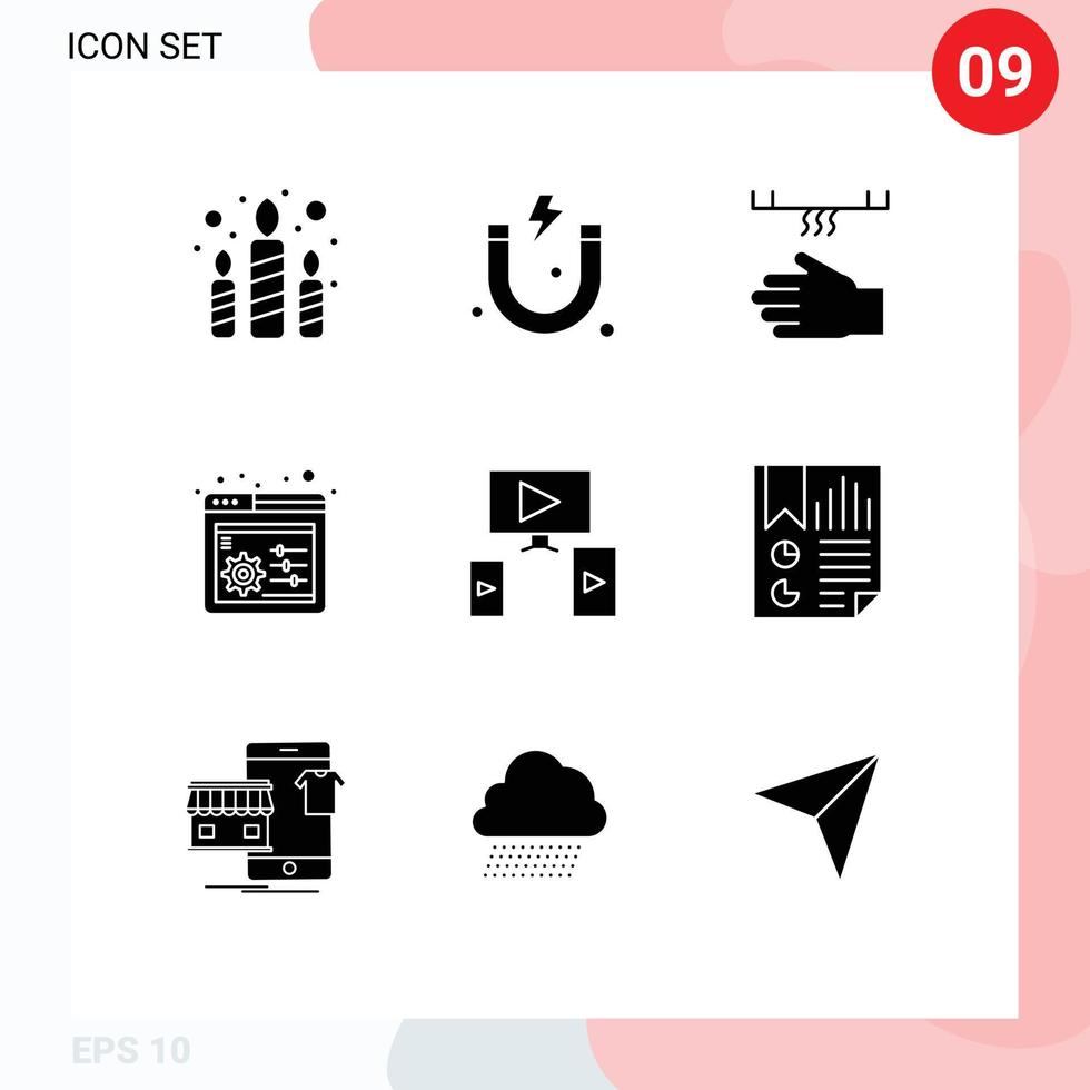 9 User Interface Solid Glyph Pack of modern Signs and Symbols of design computer bathroom settings web control Editable Vector Design Elements