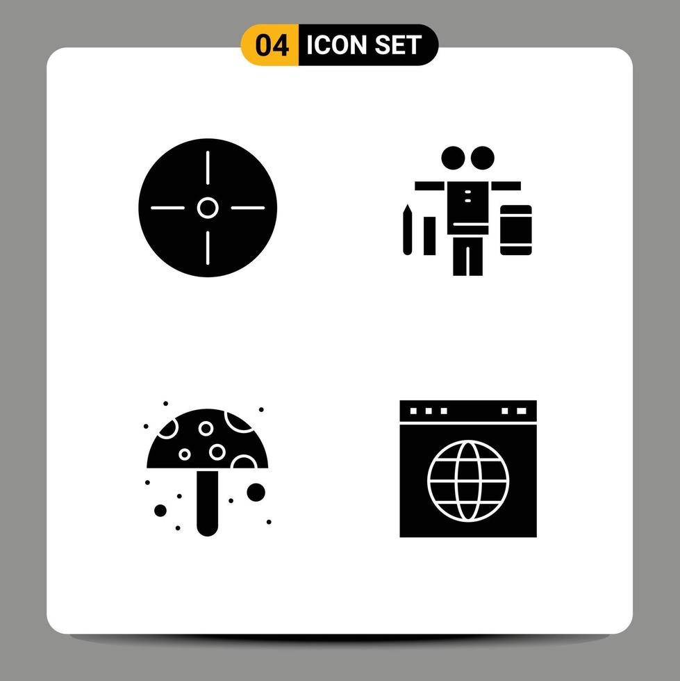 4 Universal Solid Glyphs Set for Web and Mobile Applications devices food ingredient technology play globe Editable Vector Design Elements Free Vector and Free SVG