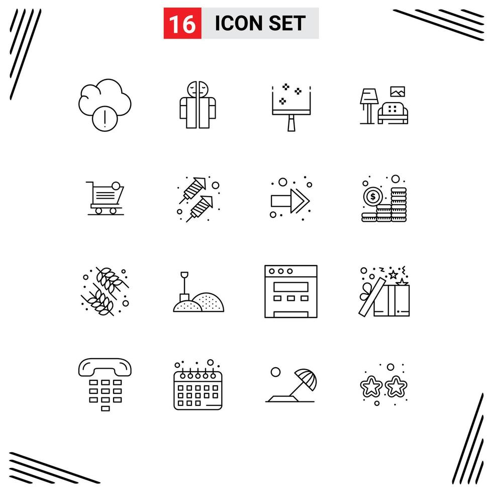 User Interface Pack of 16 Basic Outlines of item shopping dustpan cart sofa Editable Vector Design Elements Free Vector