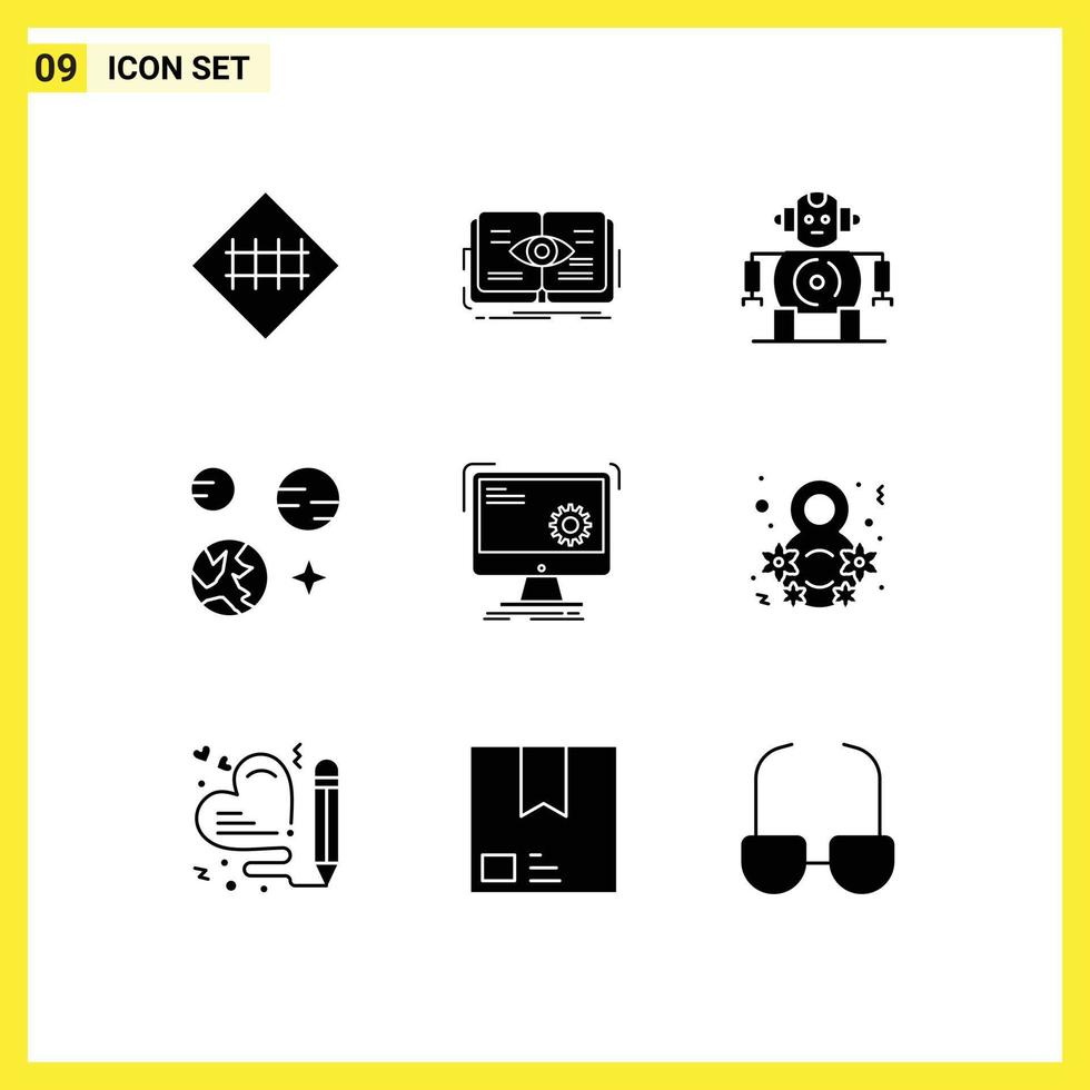 9 Thematic Vector Solid Glyphs and Editable Symbols of command science view earth technology Editable Vector Design Elements Free Vector