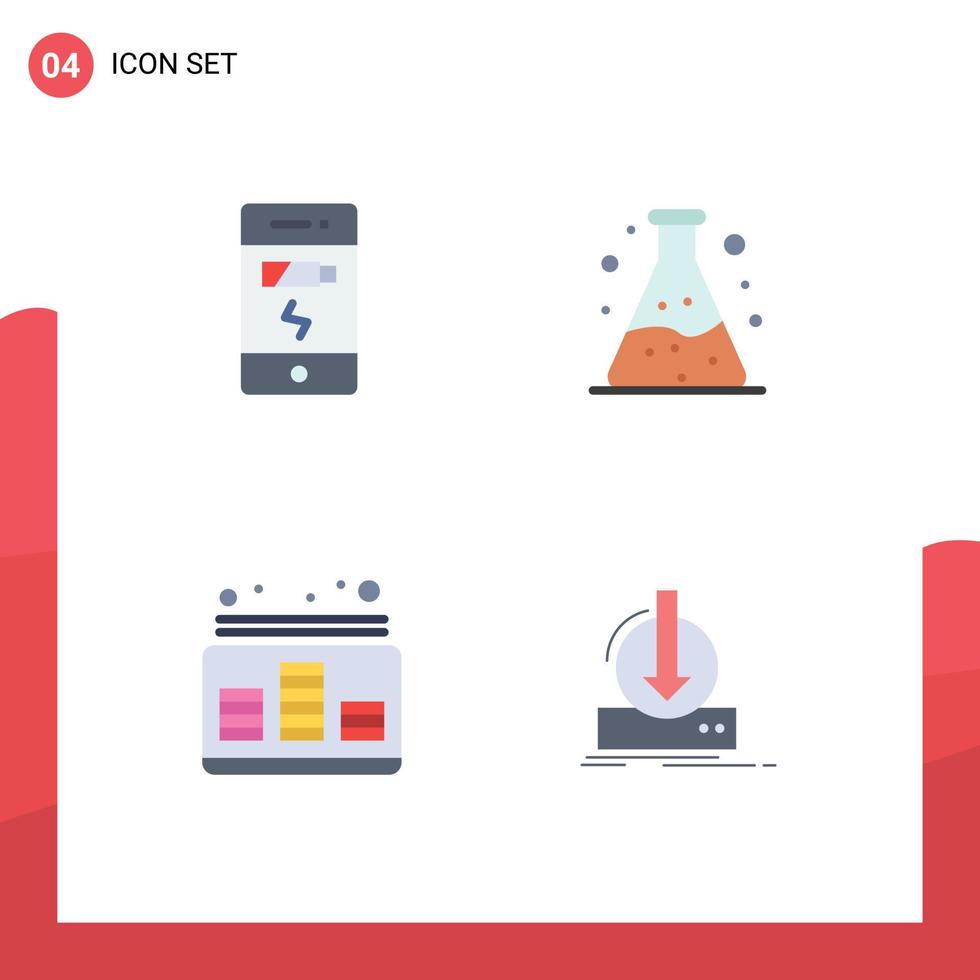4 Flat Icon concept for Websites Mobile and Apps battery level status waste sound Editable Vector Design Elements