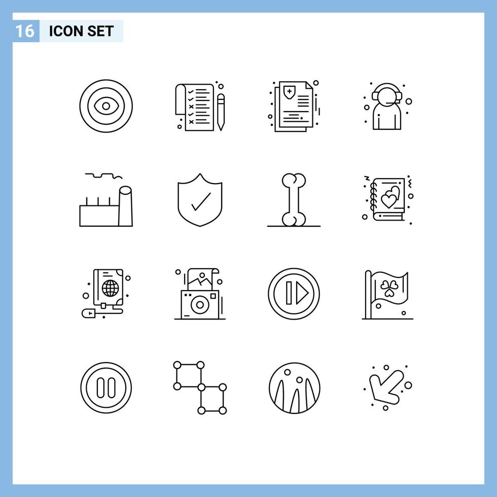 Pack of 16 Modern Outlines Signs and Symbols for Web Print Media such as boiling plant support health customer support customer Editable Vector Design Elements