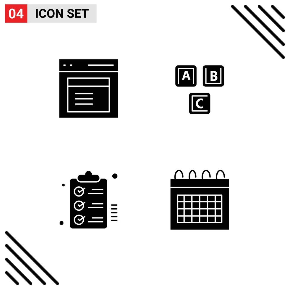 Group of 4 Solid Glyphs Signs and Symbols for communication knowledge user blocks clipboard Editable Vector Design Elements
