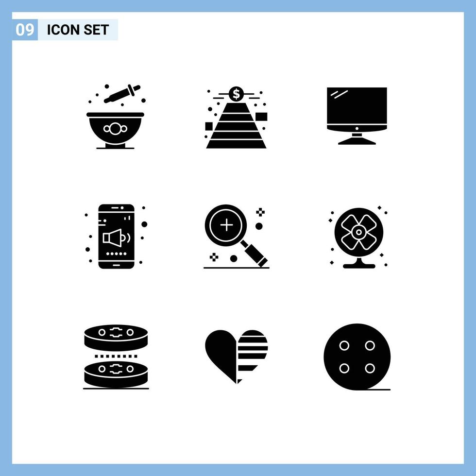 Set of 9 Modern UI Icons Symbols Signs for add sound computer mobile pc Editable Vector Design Elements