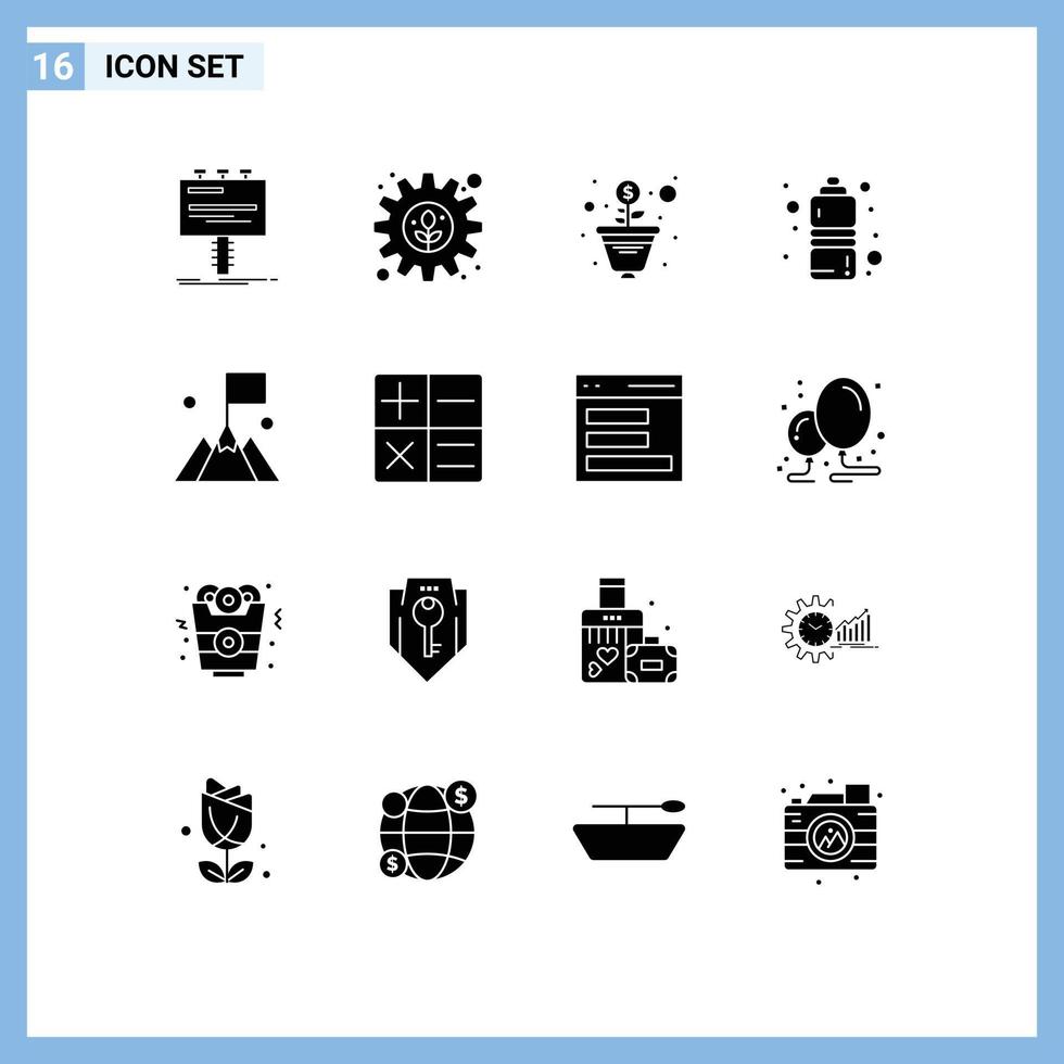 16 Universal Solid Glyphs Set for Web and Mobile Applications interface water setting sports diet Editable Vector Design Elements