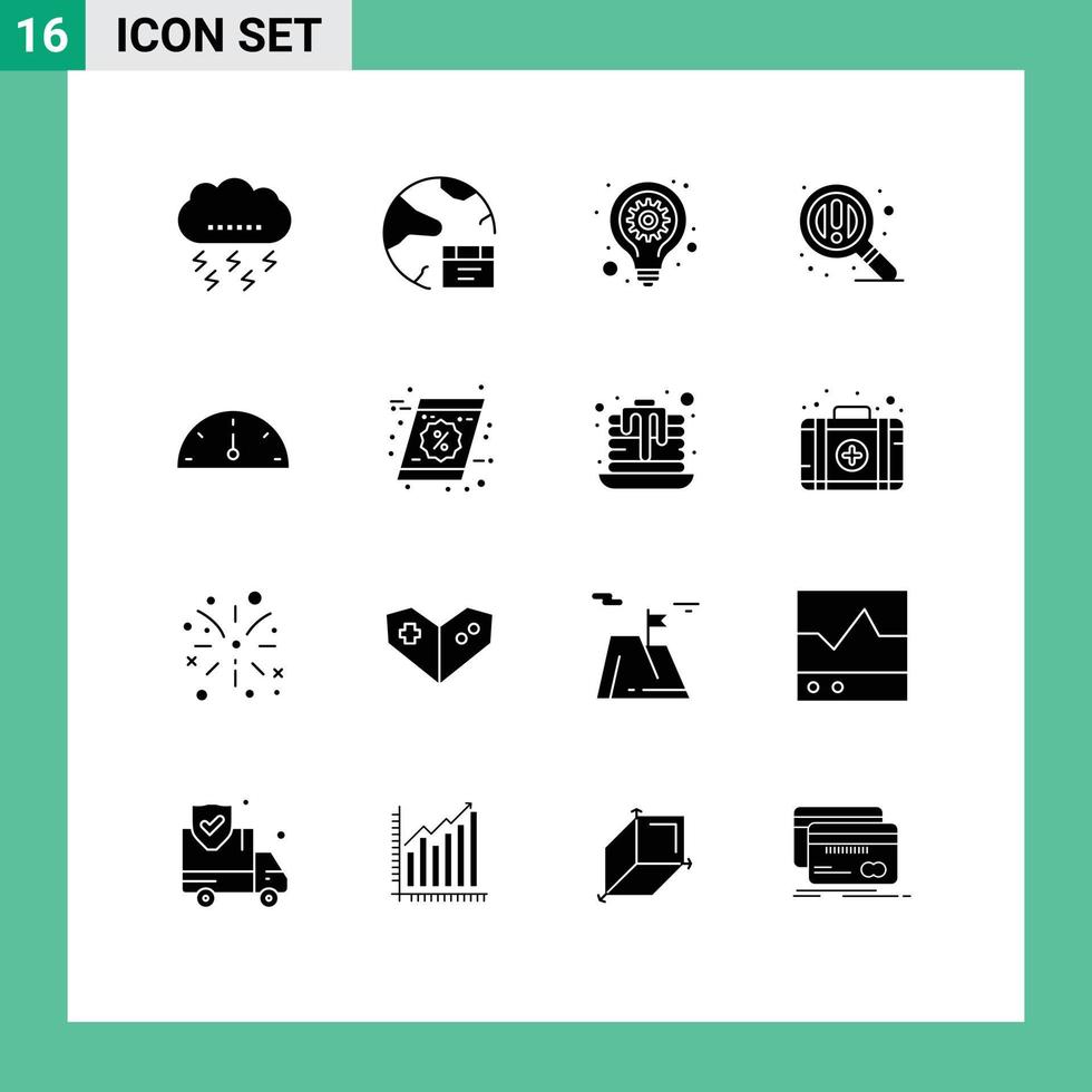 Set of 16 Modern UI Icons Symbols Signs for dashboard search global find lamp Editable Vector Design Elements