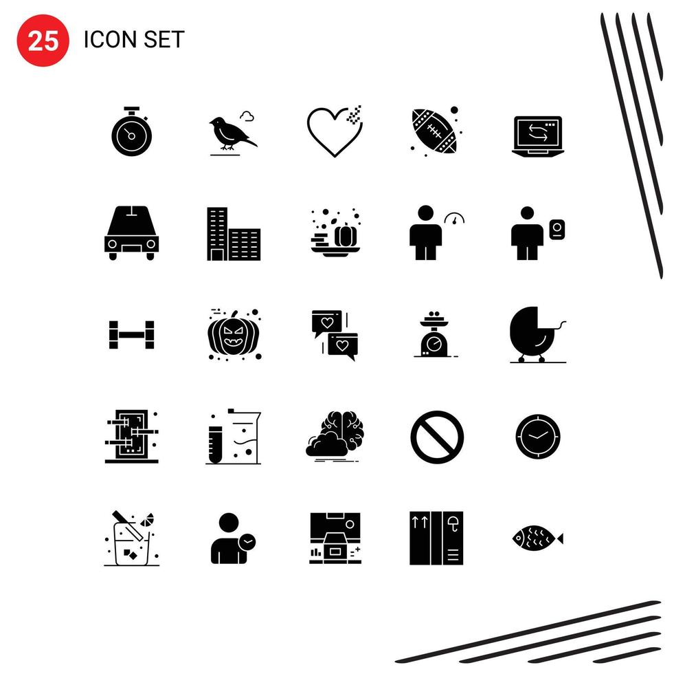 User Interface Pack of 25 Basic Solid Glyphs of hardware network heart computer ball Editable Vector Design Elements Free Vector