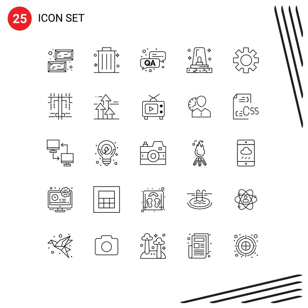 Group of 25 Lines Signs and Symbols for global gear qa setting police Editable Vector Design Elements