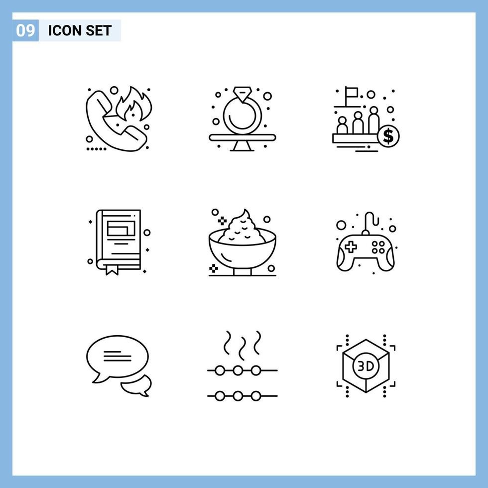 9 Universal Outlines Set for Web and Mobile Applications notepad education ring trade management Editable Vector Design Elements