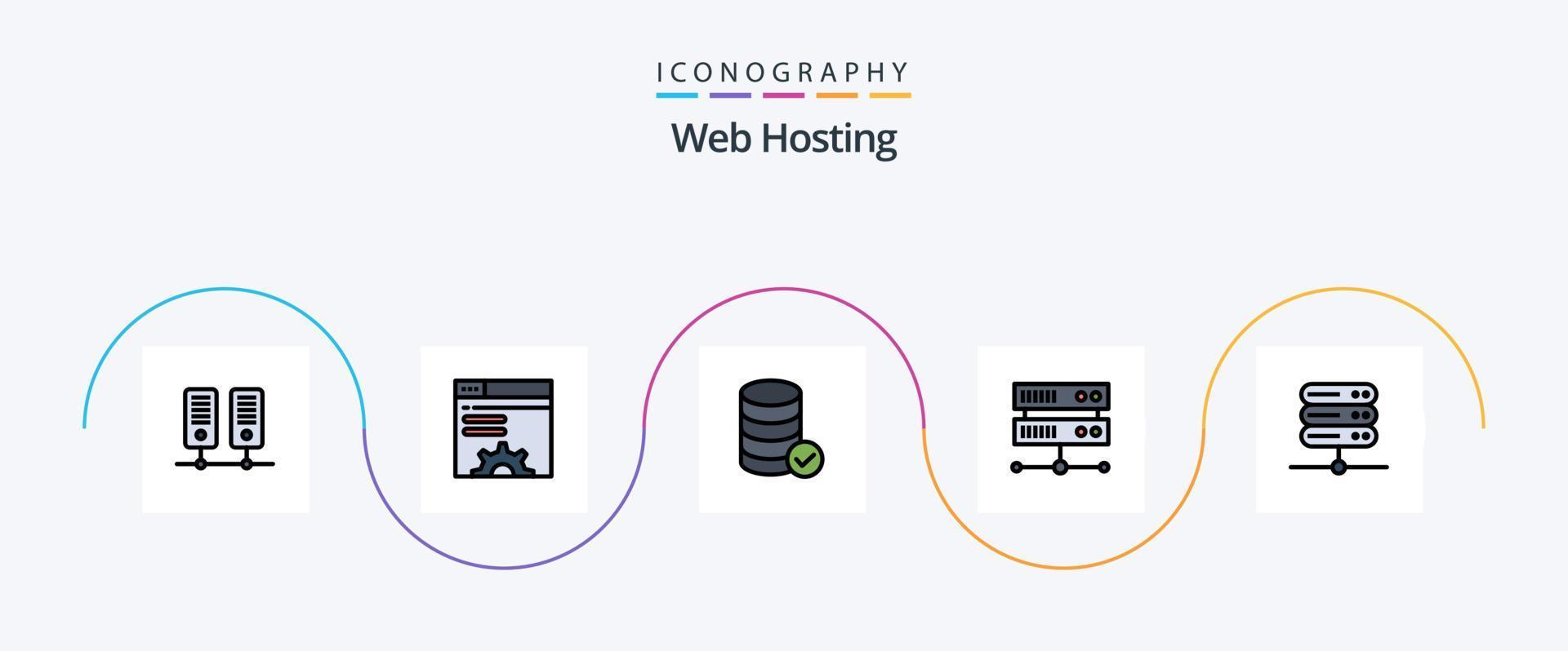 Web Hosting Line Filled Flat 5 Icon Pack Including . network. security. database. database server vector
