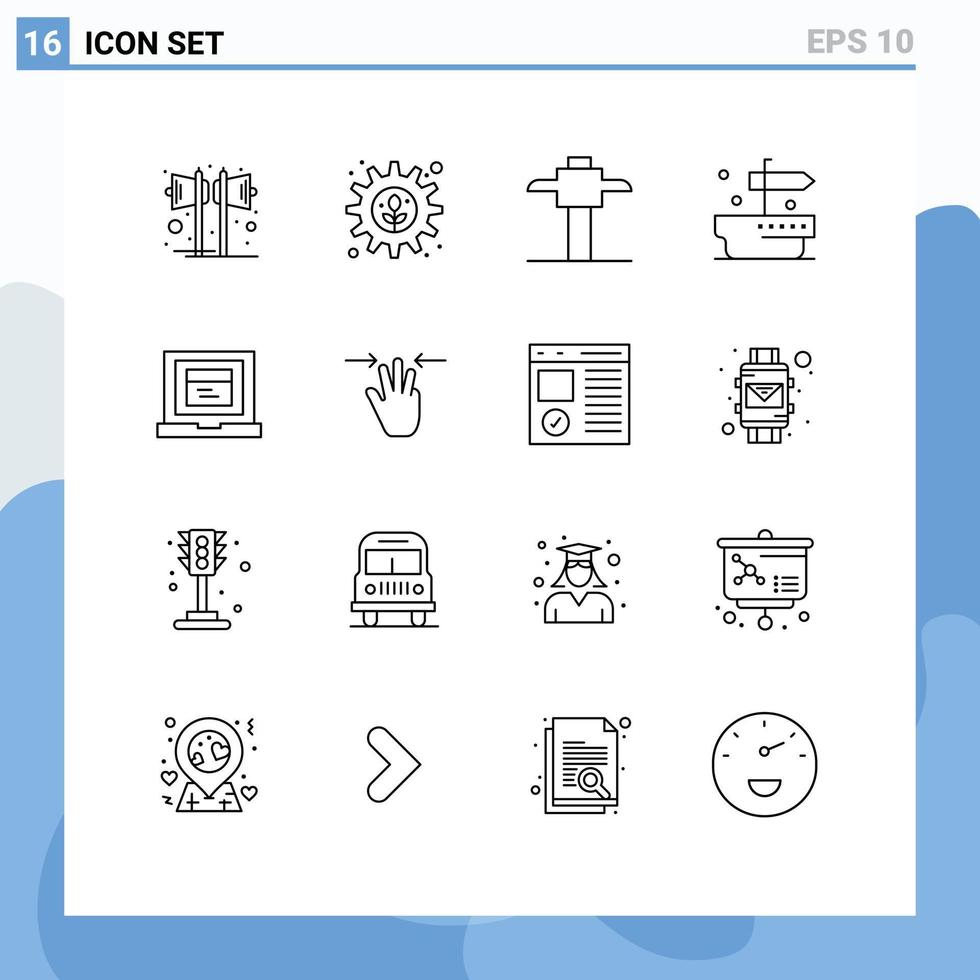 Set of 16 Modern UI Icons Symbols Signs for gestures laptop setting browser thanks Editable Vector Design Elements