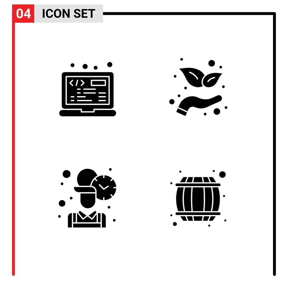 4 Universal Solid Glyph Signs Symbols of coding time html startup alcohol Editable Vector Design Elements Free Vector
