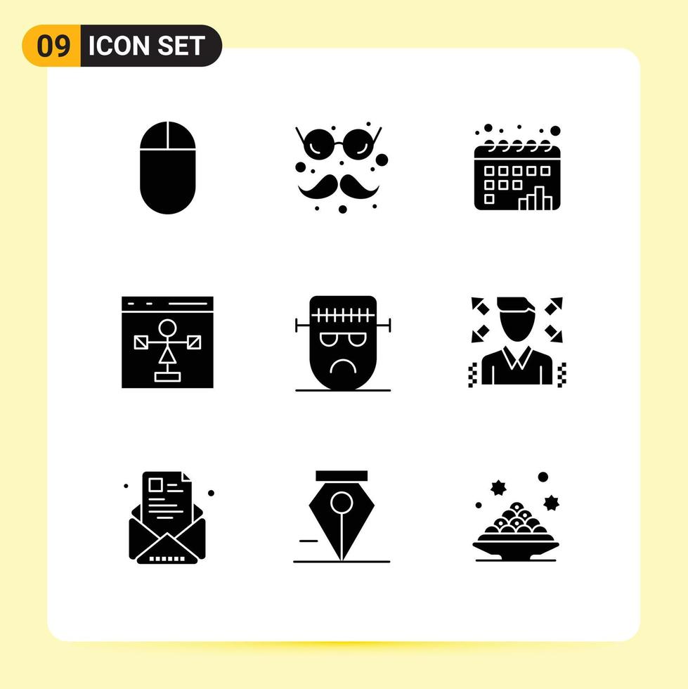 Modern Set of 9 Solid Glyphs Pictograph of face cartoon dots programming development Editable Vector Design Elements