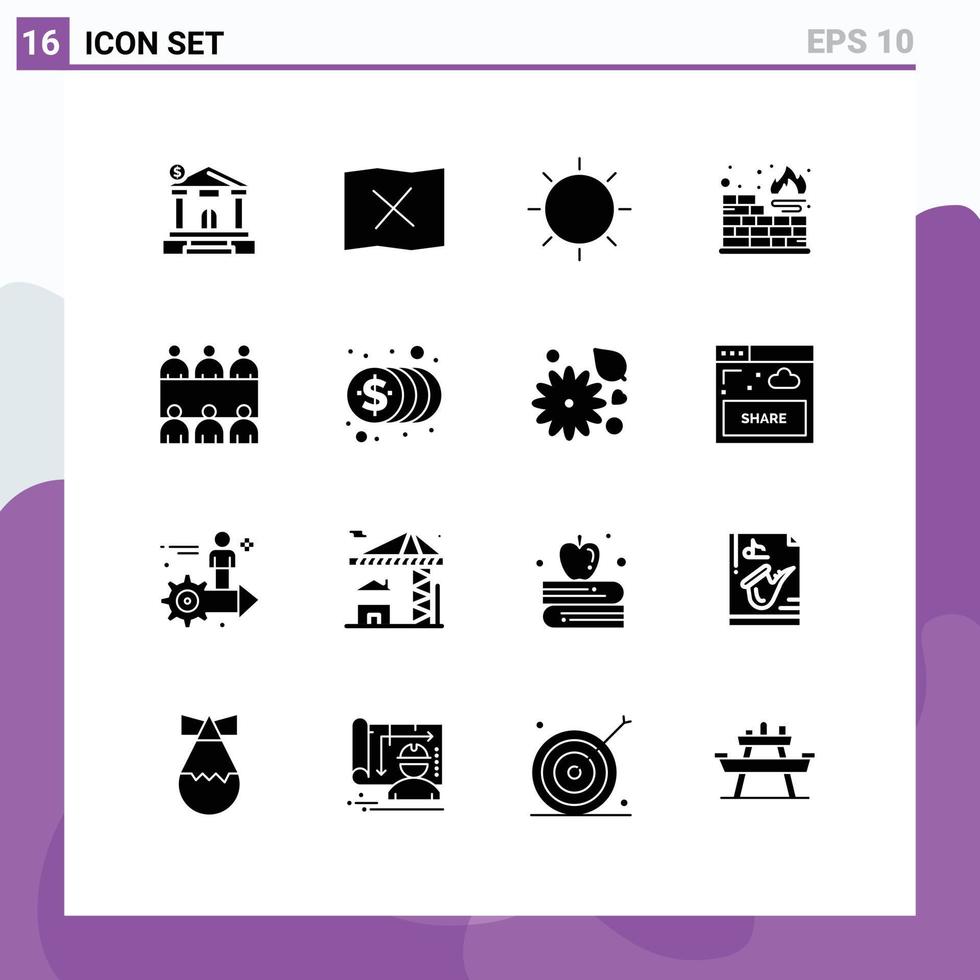 Set of 16 Vector Solid Glyphs on Grid for table conference interface protection database Editable Vector Design Elements