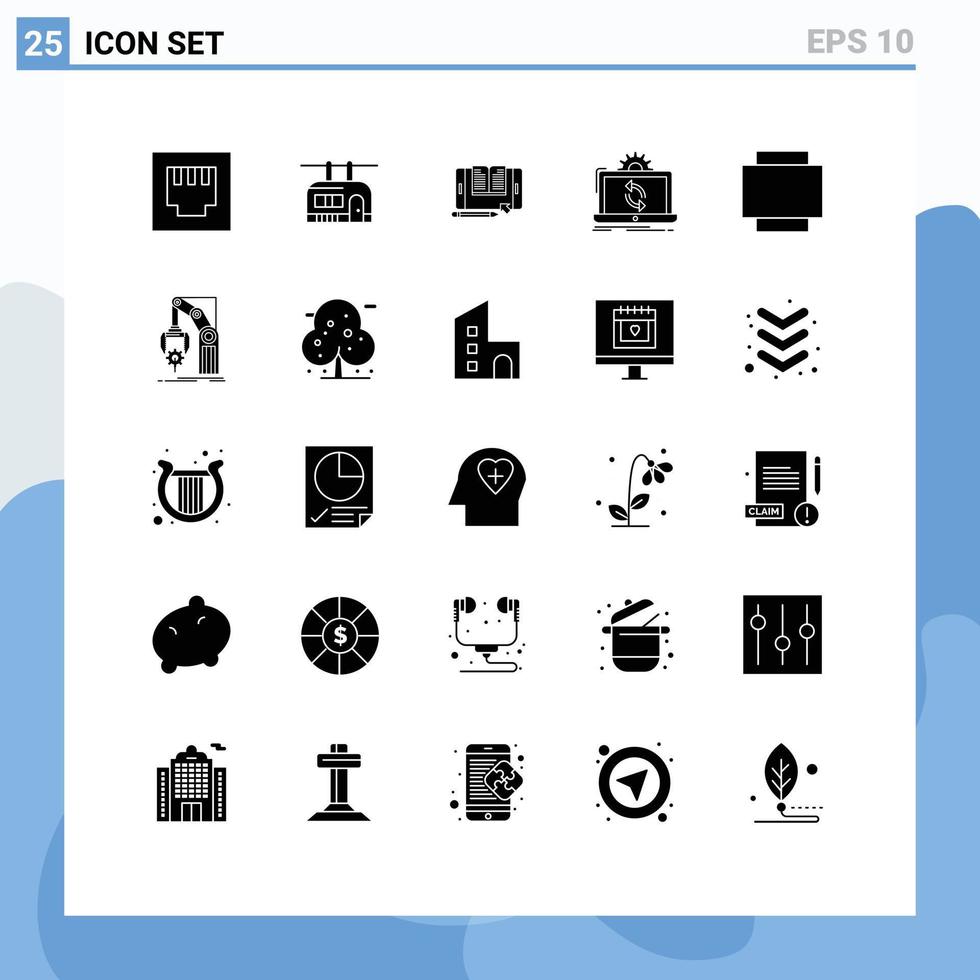 25 Solid Glyph concept for Websites Mobile and Apps rotate sync smartphone reporting processing Editable Vector Design Elements