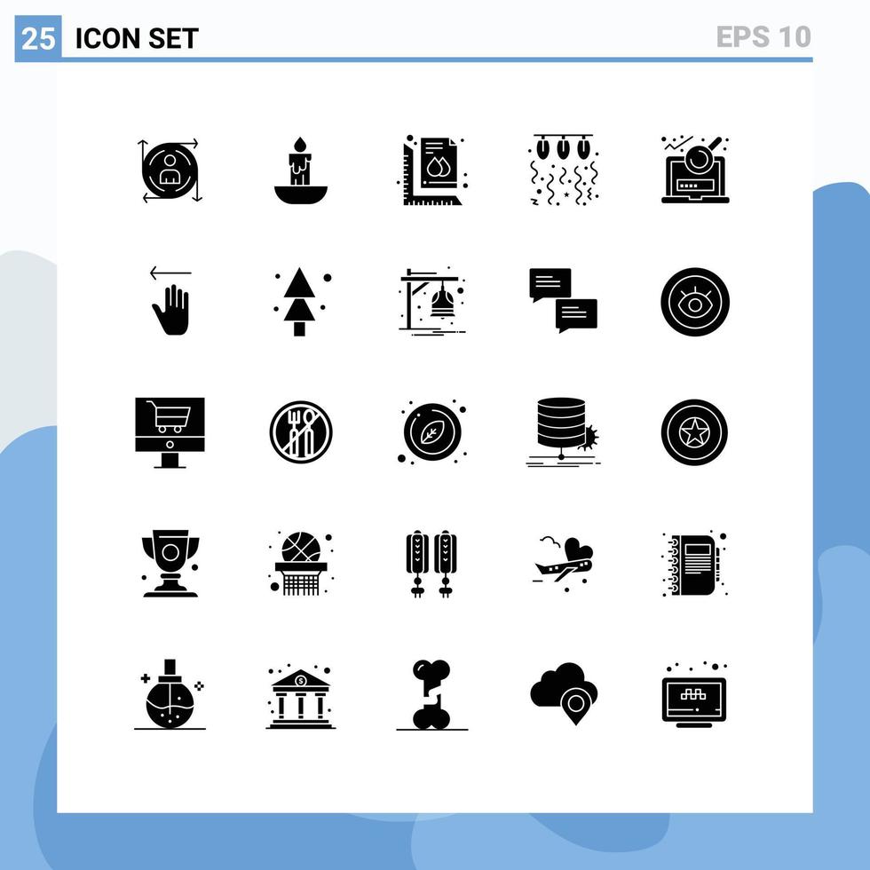Pack of 25 Modern Solid Glyphs Signs and Symbols for Web Print Media such as string light measure lamp document Editable Vector Design Elements