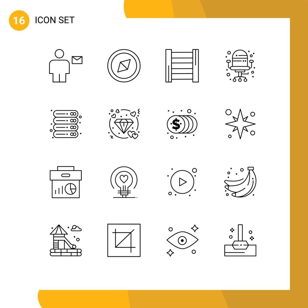 16 User Interface Outline Pack of modern Signs and Symbols of diamond server tools office data Editable Vector Design Elements Free Vector