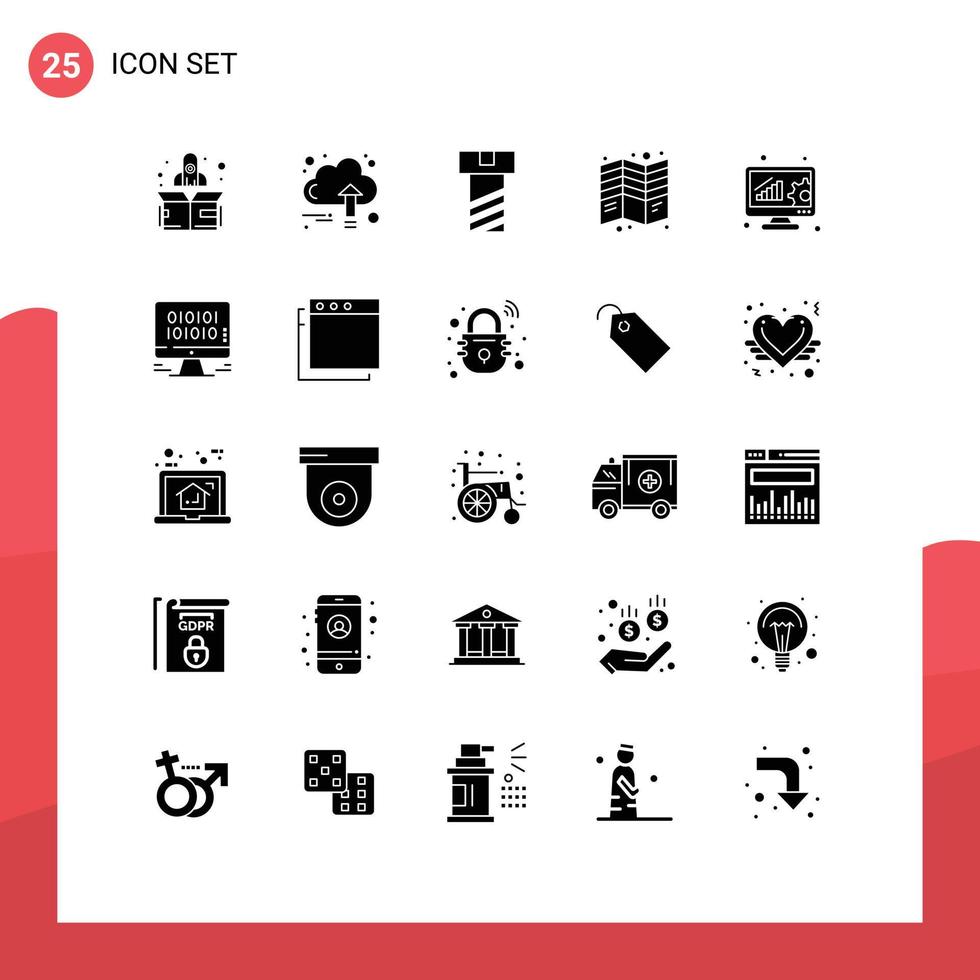 Set of 25 Modern UI Icons Symbols Signs for data management analysis bolt tri fold Editable Vector Design Elements