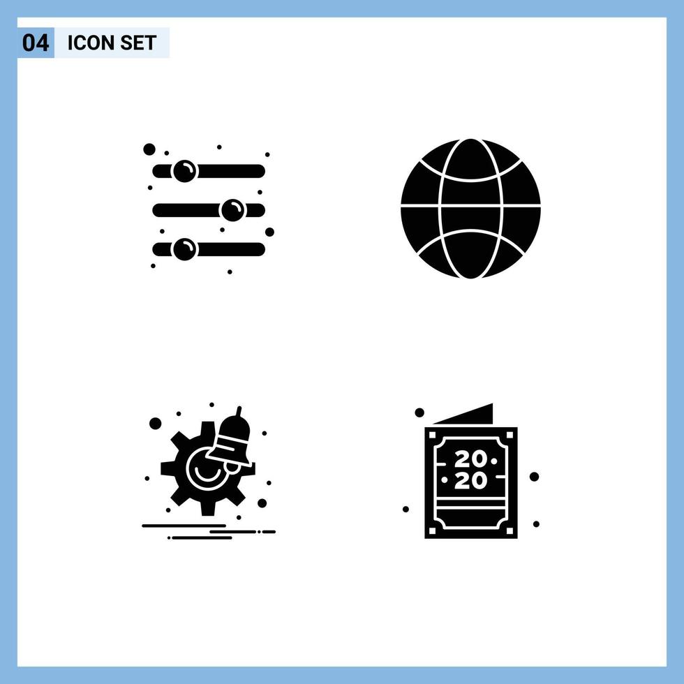 4 Solid Glyph concept for Websites Mobile and Apps configuration options preference world time Editable Vector Design Elements
