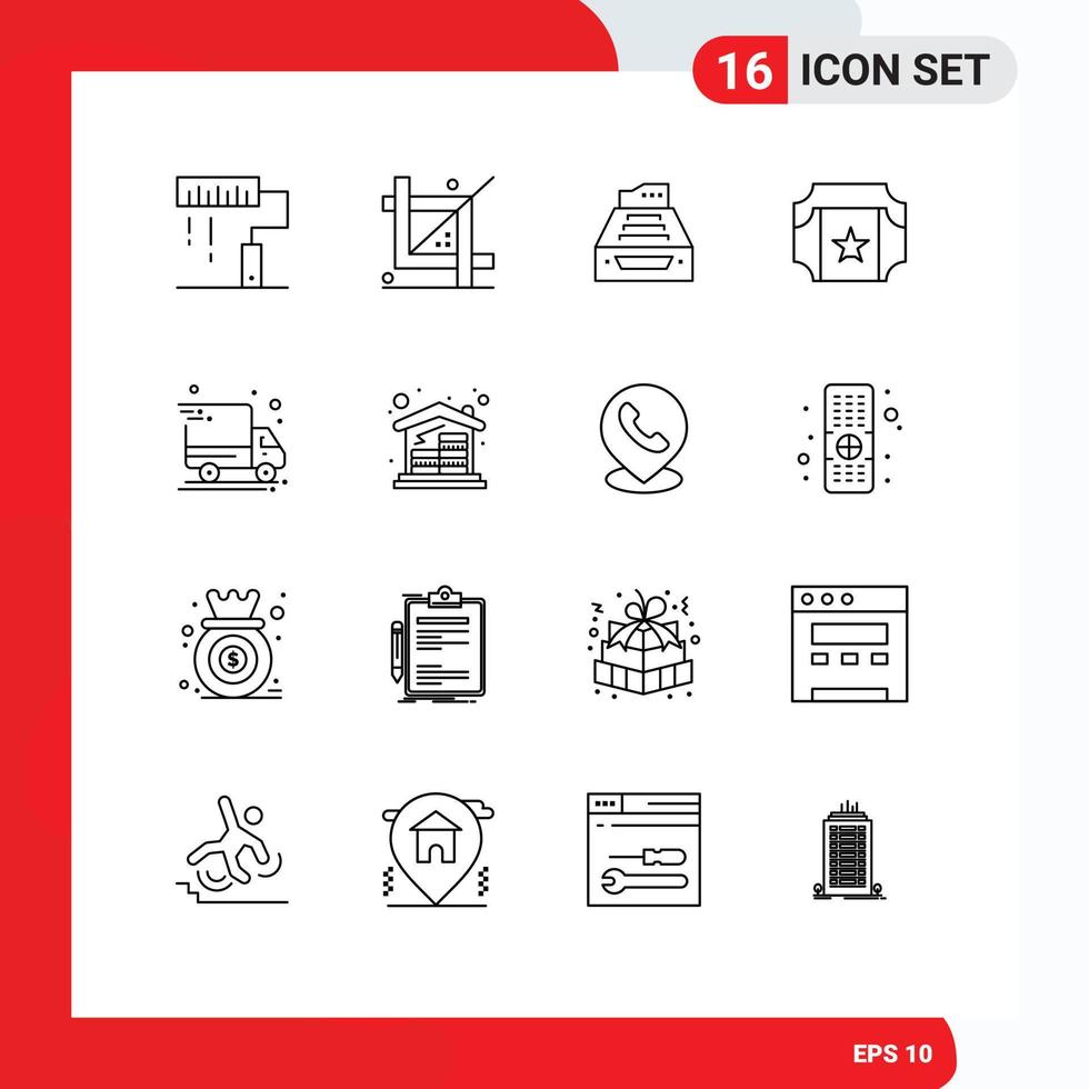 Pictogram Set of 16 Simple Outlines of cinema inbox development database accounts Editable Vector Design Elements Free Vector