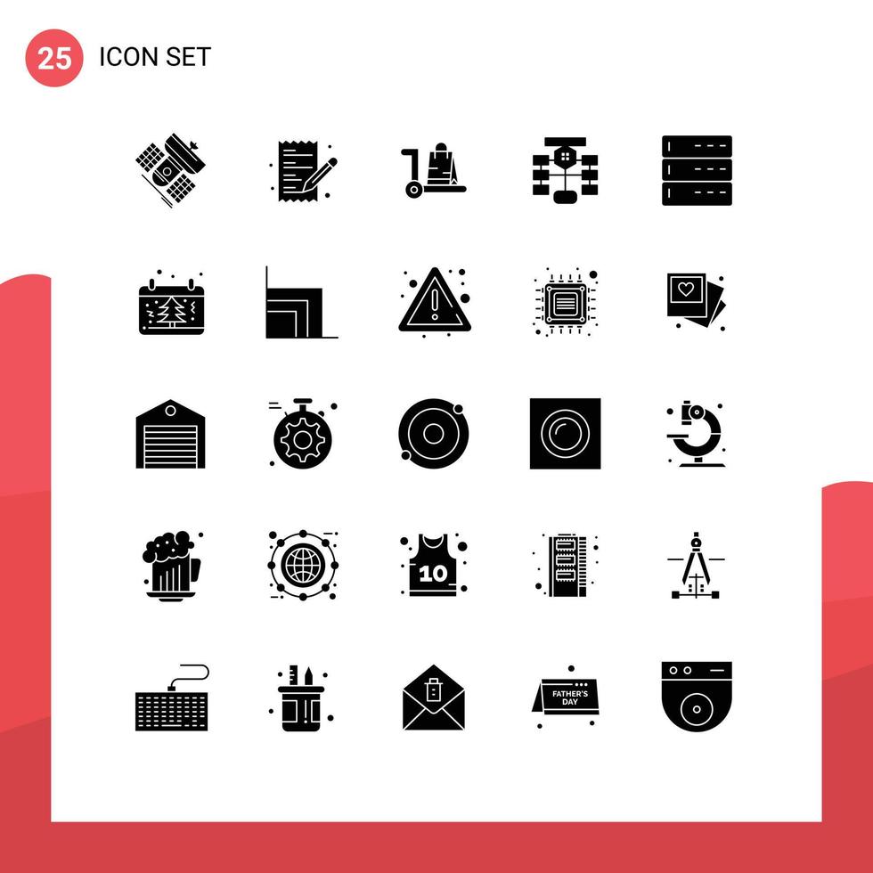 Group of 25 Modern Solid Glyphs Set for data flow shopping flowchart shop Editable Vector Design Elements