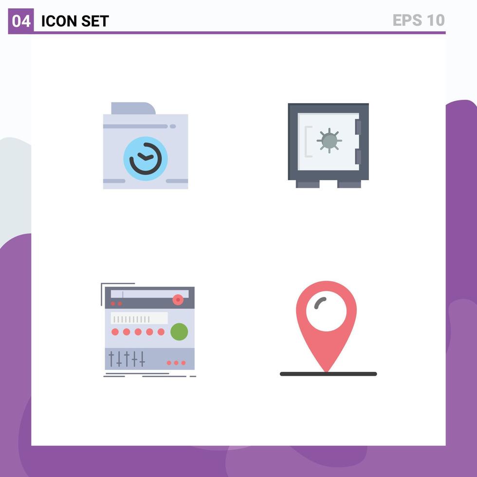 Set of 4 Vector Flat Icons on Grid for camera module lock secure studio Editable Vector Design Elements Free Vector