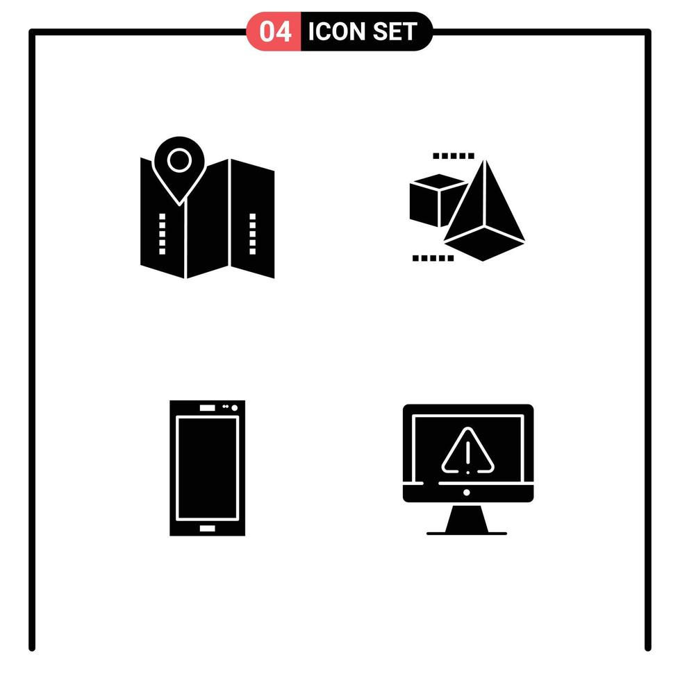 Pack of 4 Modern Solid Glyphs Signs and Symbols for Web Print Media such as map mobile location triangle iphone Editable Vector Design Elements