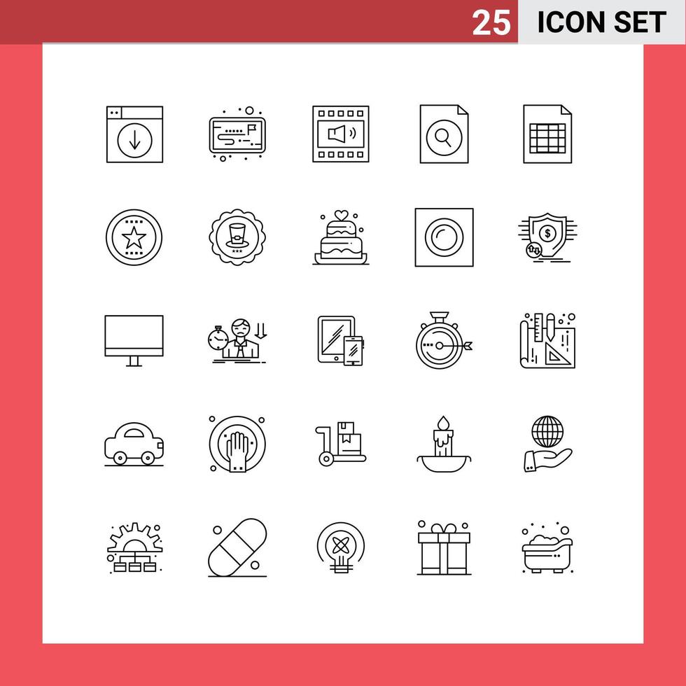 Modern Set of 25 Lines Pictograph of excel search amplifier file volume Editable Vector Design Elements