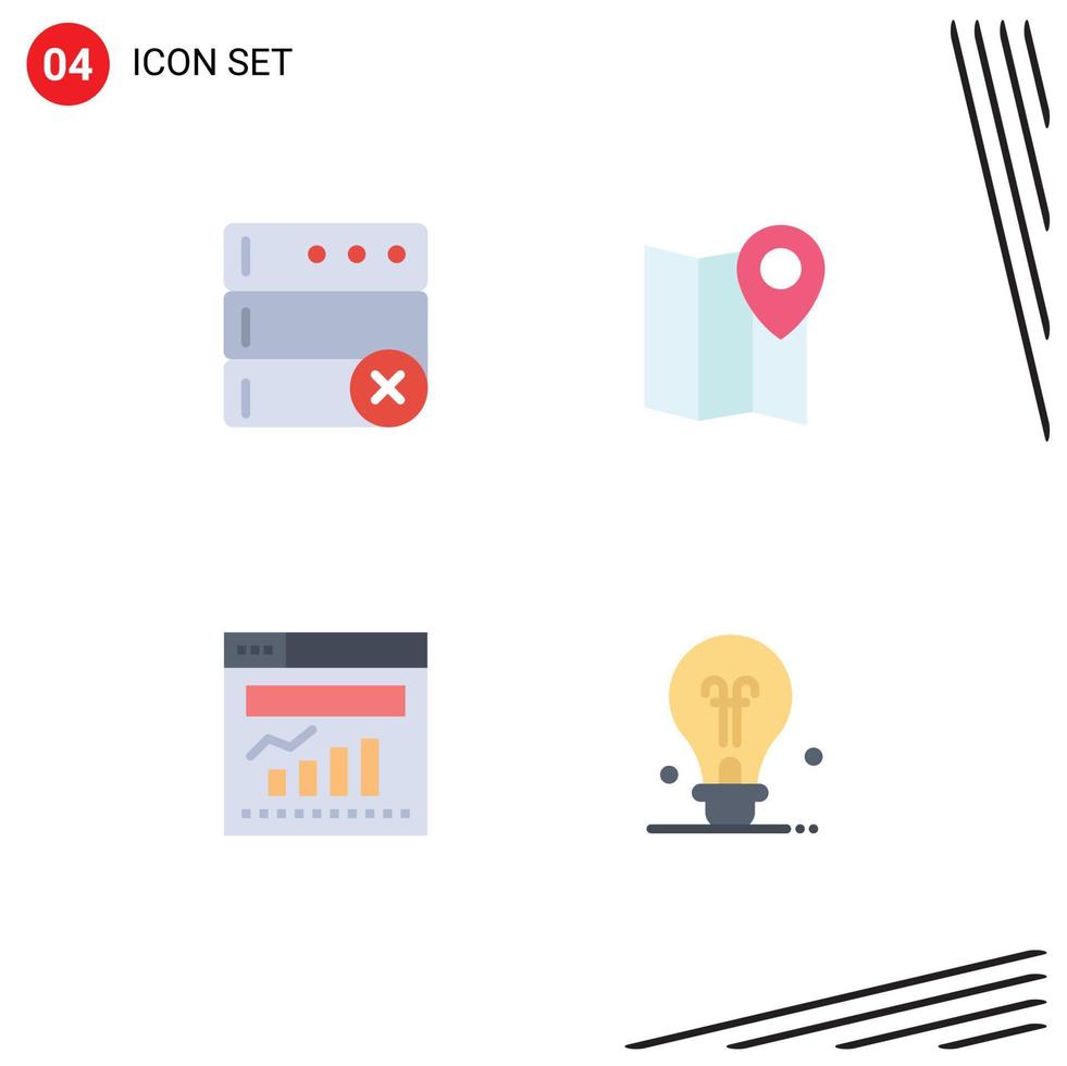 4 User Interface Flat Icon Pack of modern Signs and Symbols of database internet location pin bulb Editable Vector Design Elements