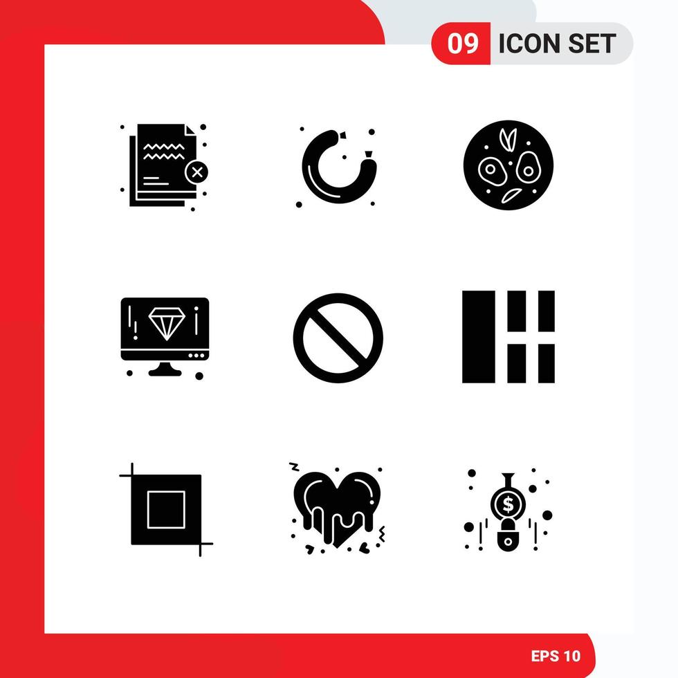Pictogram Set of 9 Simple Solid Glyphs of media page supermarket computer design Editable Vector Design Elements